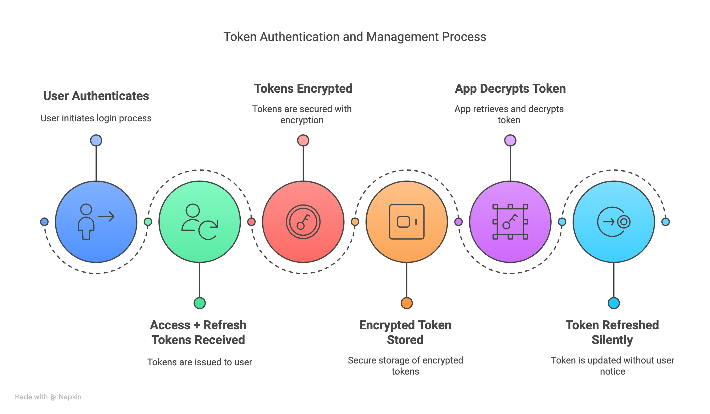 - App decrypts and uses token when needed